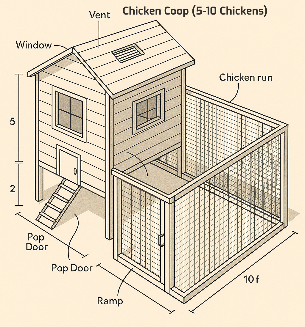 Beginner-Friendly Chicken Coop Plan for 5–10 Chickens – DIY Backyard Chicken Coop Design with Measurements, Nesting Boxes, Roosts & Predator-Proof Layout